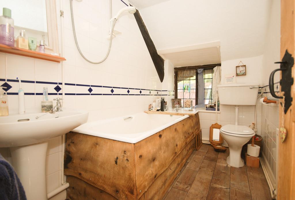 BATHROOM 1.57 x 2.65 (5'1" x 8'8") Bath with shower attachment, WC and hand basin.