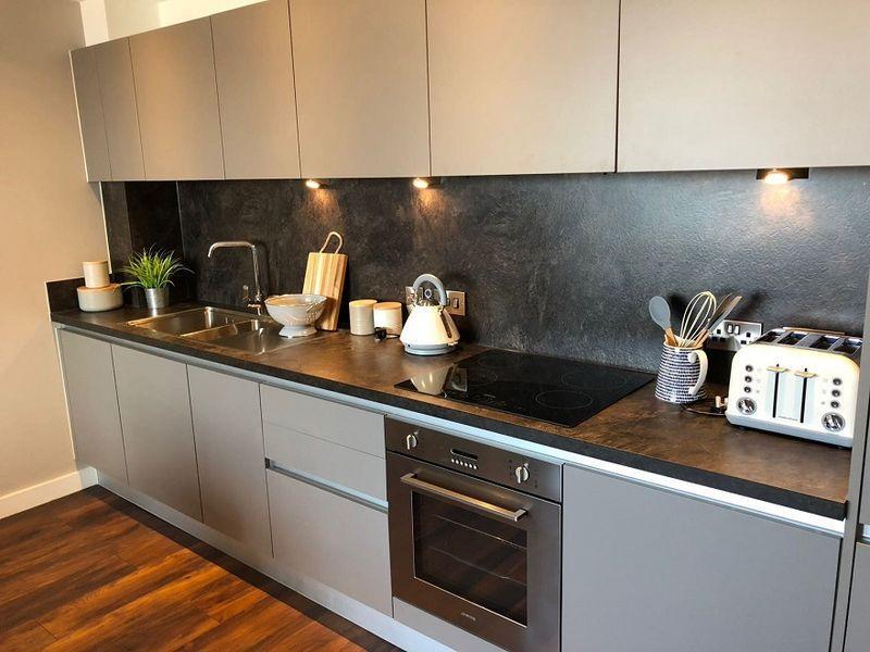These Luxurious apartments benefit from Walnut Veneer Internal Doors, Satinwood finish to internal skirtings and architraves, handle-less door, and drawer fronts, LED downlights throughout, and much more. All Appliances have been Integrated, Including- Fridge-Freezer, dishwasher, ceramic hob and oven. Washer/ Dryers have also been equipped in the utility area.