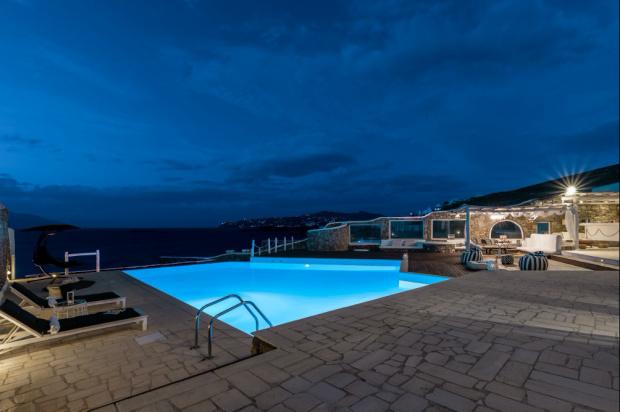 The villa boasts up to 1,900 sq.m and has stunning views of the sea and just a few steps from the beaches of Mykonos.