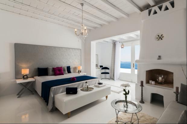 Second Floor - A luxurious suite with a private balcony and a master bedroom which overlook the pool, the sea, and the town of Mykonos.