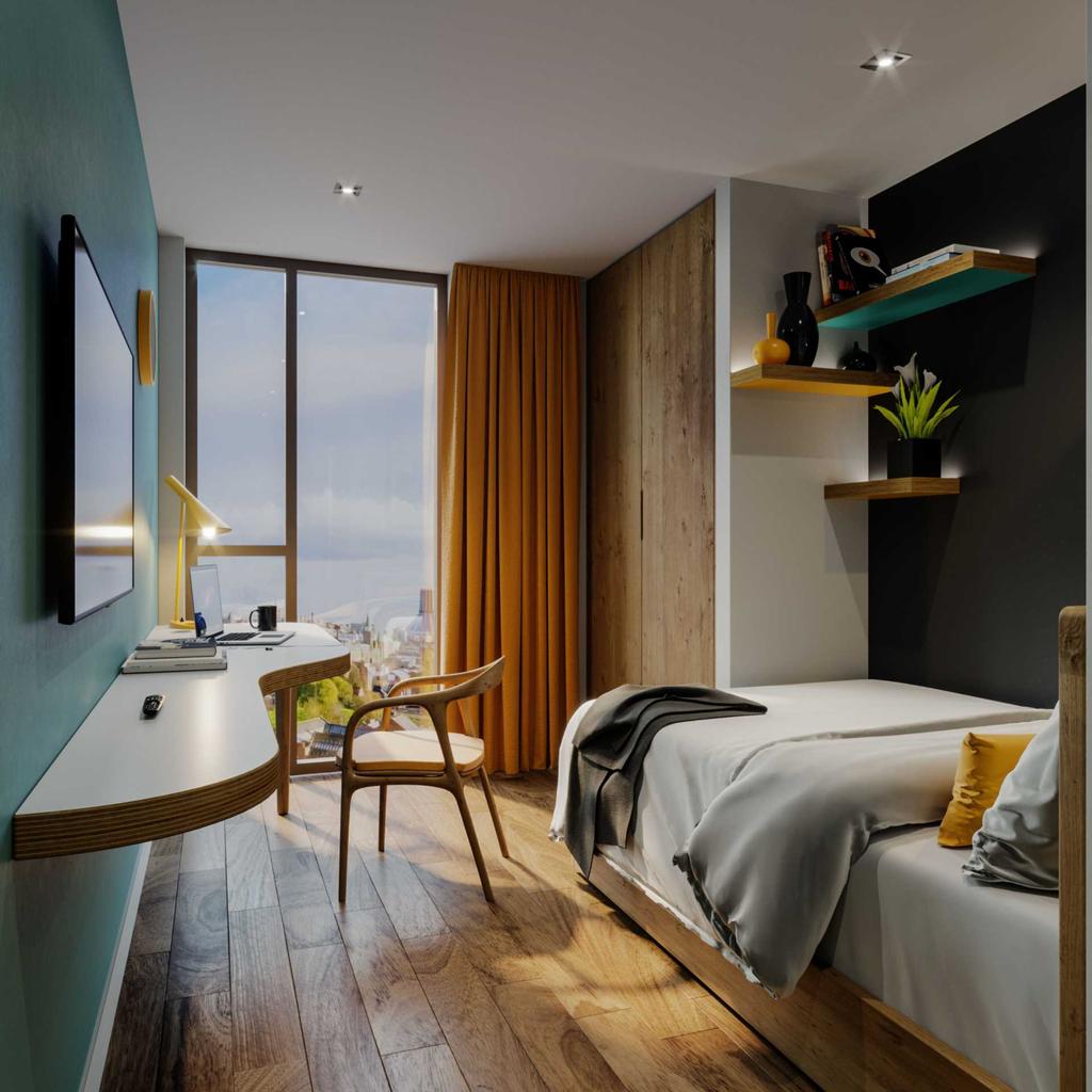 Each cluster pod contains an en-suite shower and toilet along with a study area. Each section contains 5 cluster apartments with access to their allocated communal lounge and kitchen area.