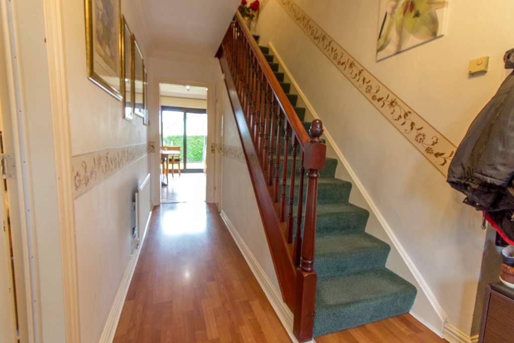 ENTRANCE HALL (approx 14'7 x 6'5 max) Composite Everest entrance door with Everest uPVC double glazed side panel. Enclosed staircase to first floor. Coved ceiling. Attractive laminate flooring.