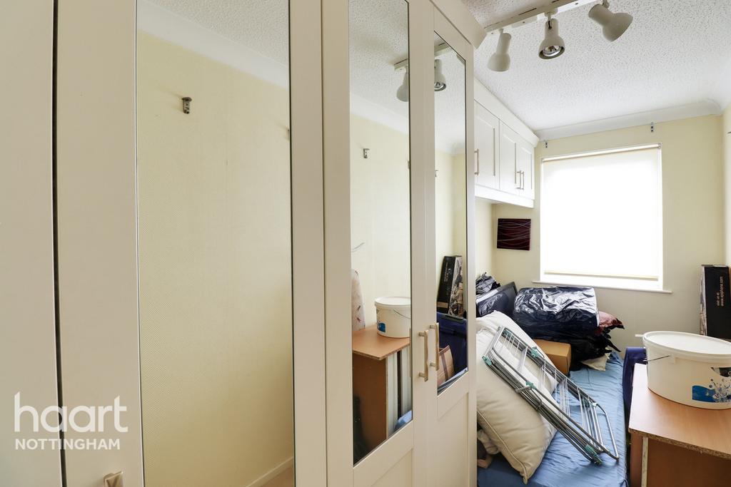 Upvc double glazed window to the front, wardrobes, storage cupboard, radiator and carpet flooring
