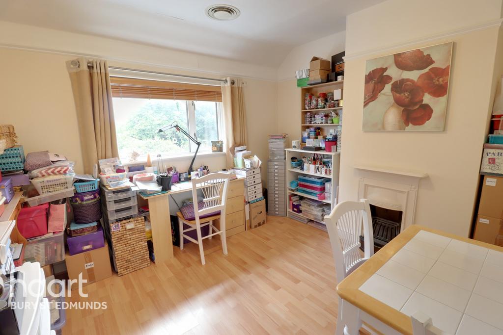 Window to rear aspect. Picture rail. Victorian fireplace. Wood laminate floor.