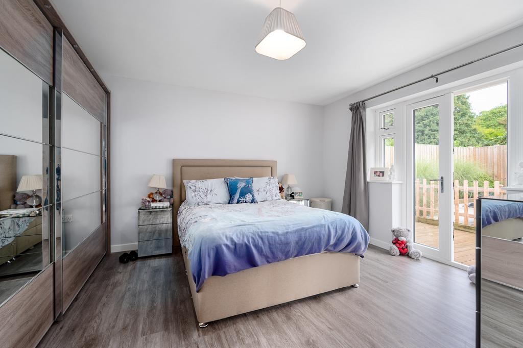 Main Bedroom - (5.07 (reducing to 3.61m) X 4.32m) (16-6 (reducing to 11-8) X 14-2) With double-glazed patio doors opening onto the rear garden door to: