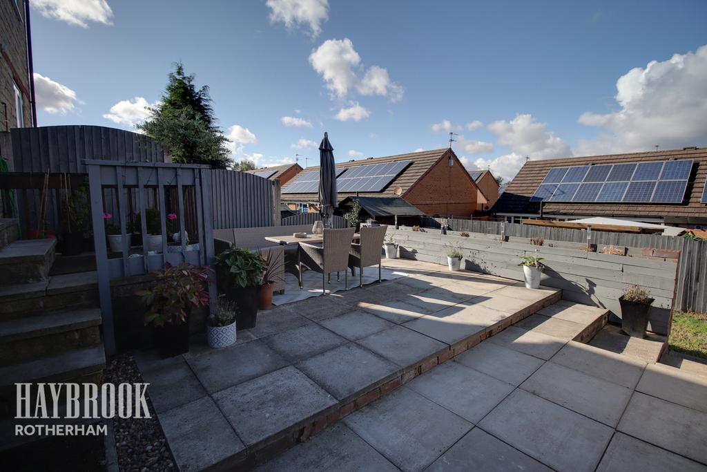 To the rear of the property is a stone flagged patio, lawned area and a shed. Also with gated access to the front.