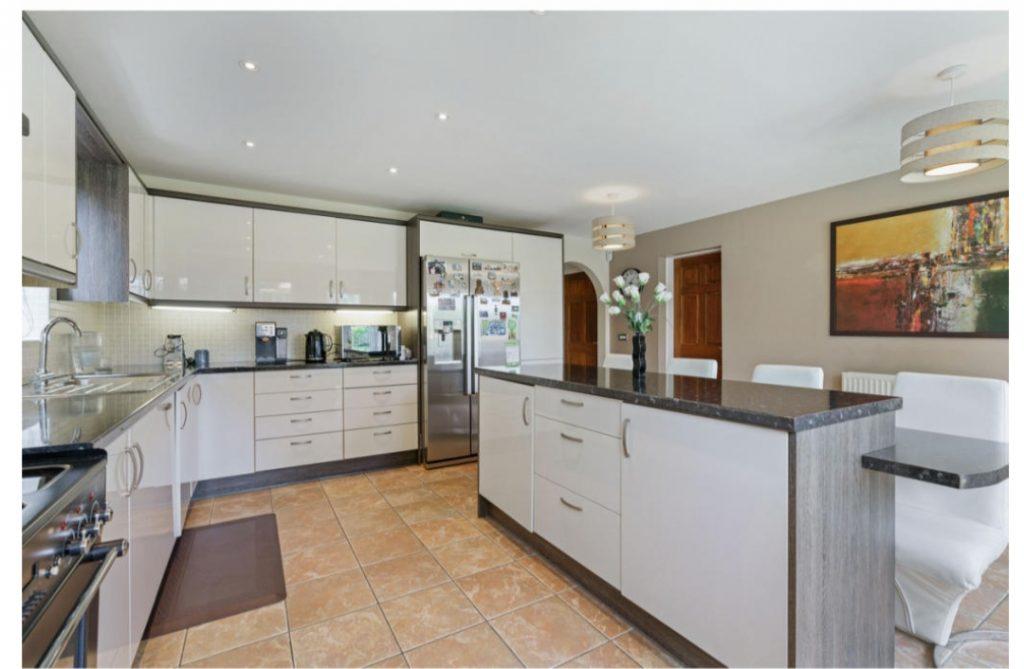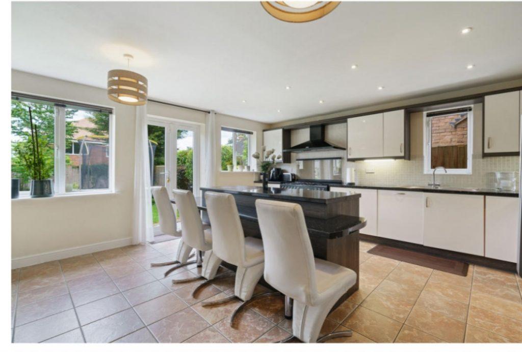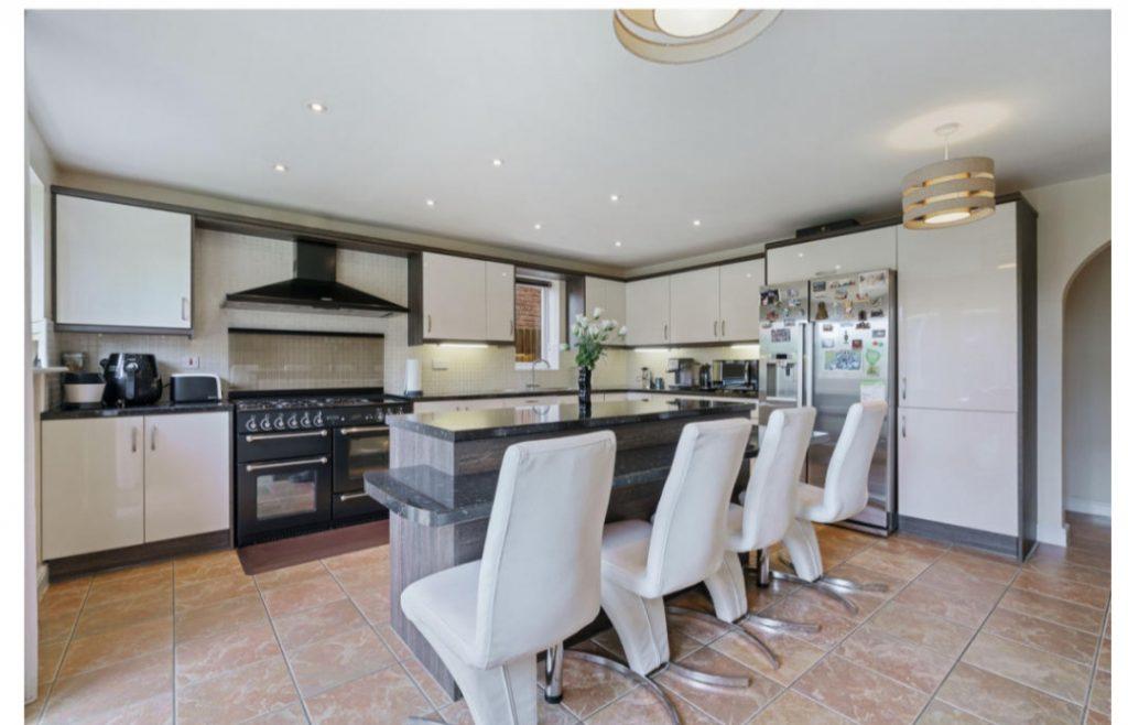 - A huge fitted kitchen with a breakfast bar, white goods and a formal dining room.