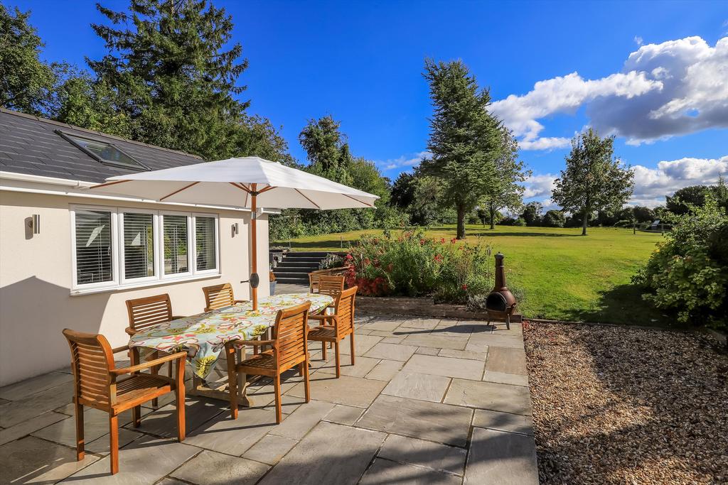 To the front of the house is a gravel drive providing plenty of parking spaces. To the rear of the house is a large stone south and west-facing terrace with a built in bbq area, ideal for entertaining. Steps lead to the laid to lawn garden and beyond to the paddock, which has an outbuilding currently used as a workshop (potential stables). The property is set within 1.15 acres of land.