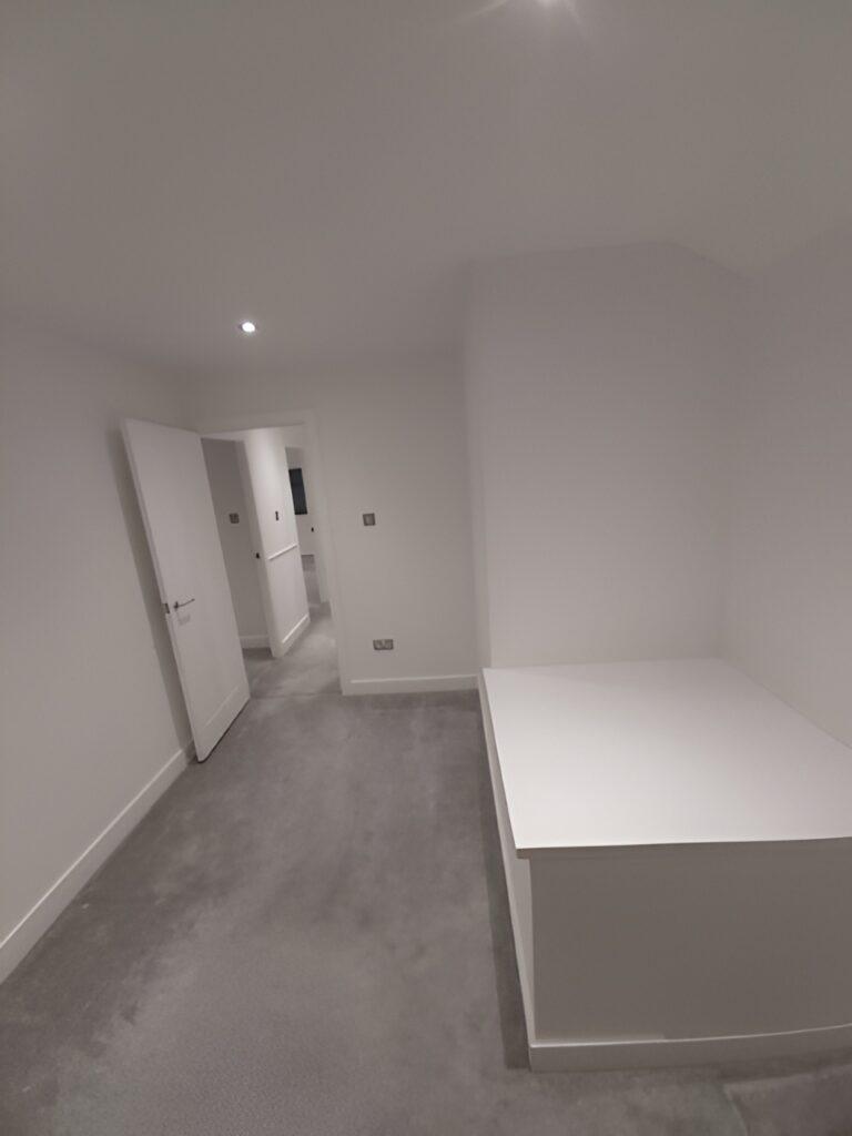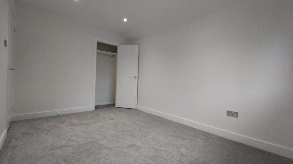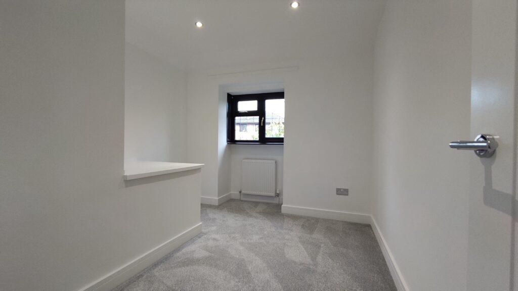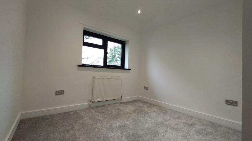 BEDROOMS - Each of the four bedrooms offers a tranquil retreat, boasting brilliant white finished walls and soft grey carpets for a calming atmosphere. Two bedrooms are spacious doubles, while the remaining two are perfect for a child's bedroom or home office. Natural light streams in through the dark brown windows, enhancing the sense of space and comfort in each room.