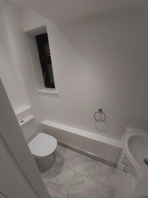 BATHROOMS - On the first floor is the the beautifully appointed bathroom, featuring grey marble tiling surrounding the bath/shower, wash basin and toilet. White walls complement the marble, creating a serene and elegant space for relaxation. A modern W/C can also be found on the ground floor.