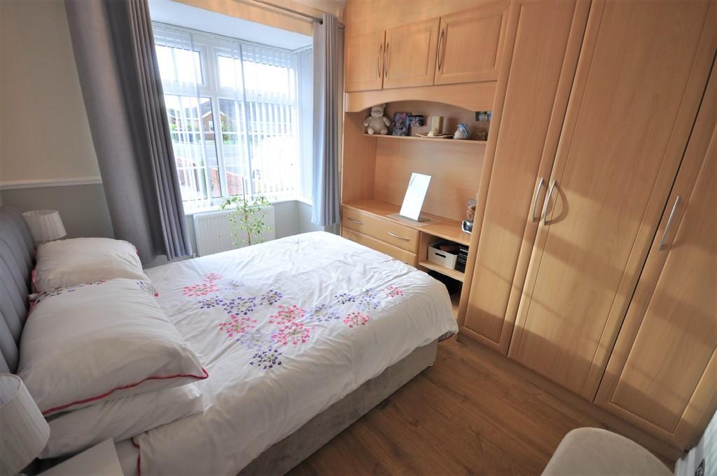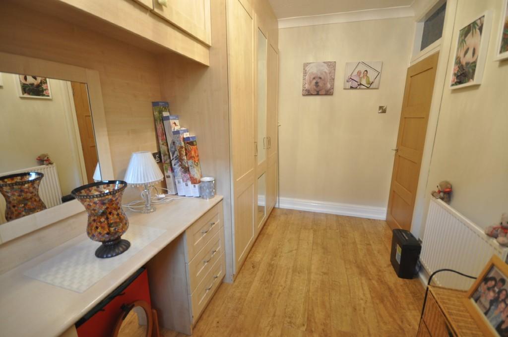 BEDROOM THREE 12' 10" x 6' 11" (3.92m x 2.13m) Side facing UPVC double glazed window. Fitted with a range of wardrobes, cupboards and dressing table with drawers. Engineered timber flooring. Radiator.