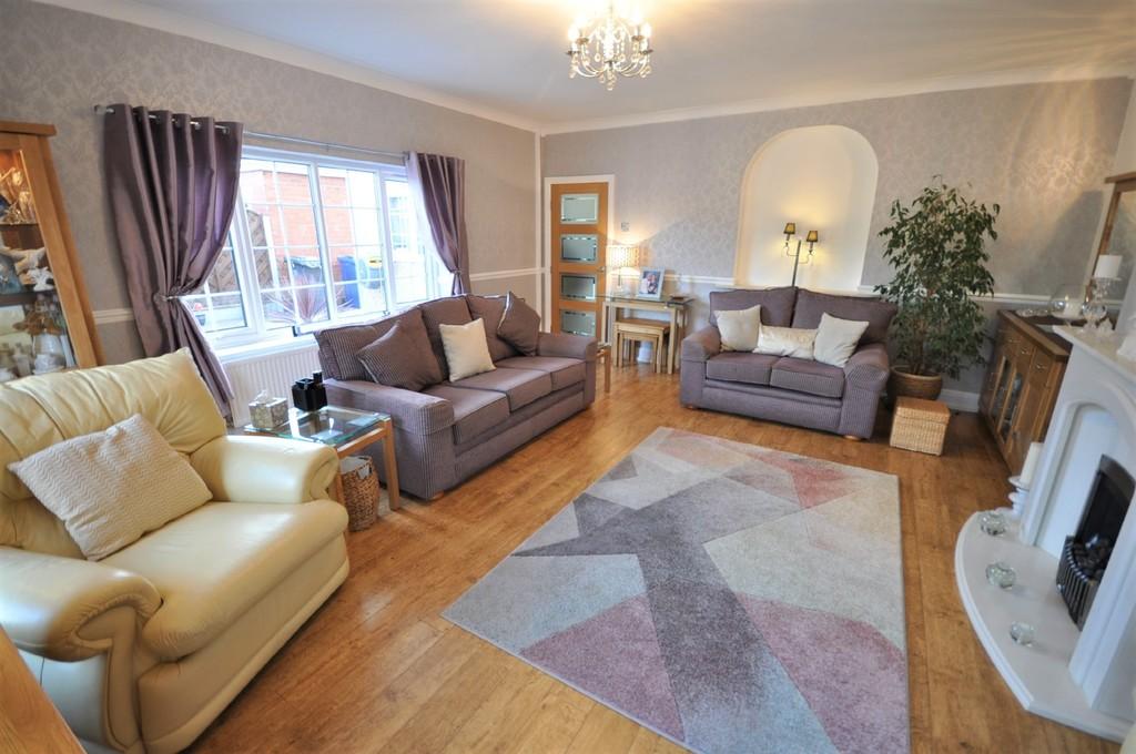 LOUNGE 17' 11" x 16' 2" (5.47m x 4.95m) Two rear and one side facing UPVC double glazed windows. Feature granite fireplace with matching hearth and inset to a coal effect gas fire. Wall lights. Feature alcove with marble shelf. Engineered timber flooring. Radiator.