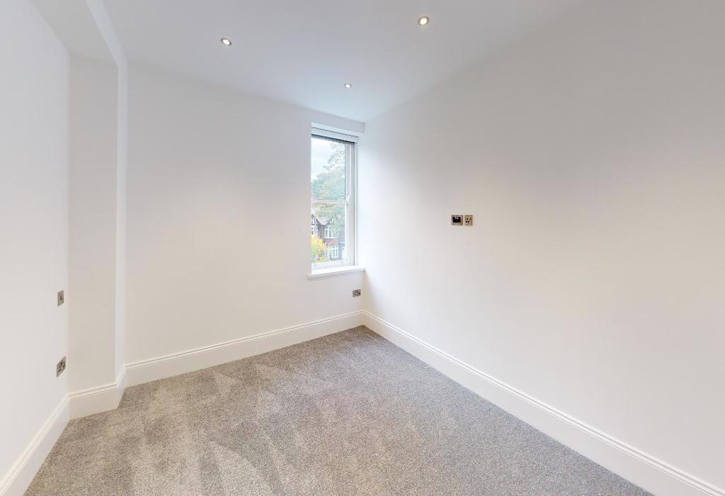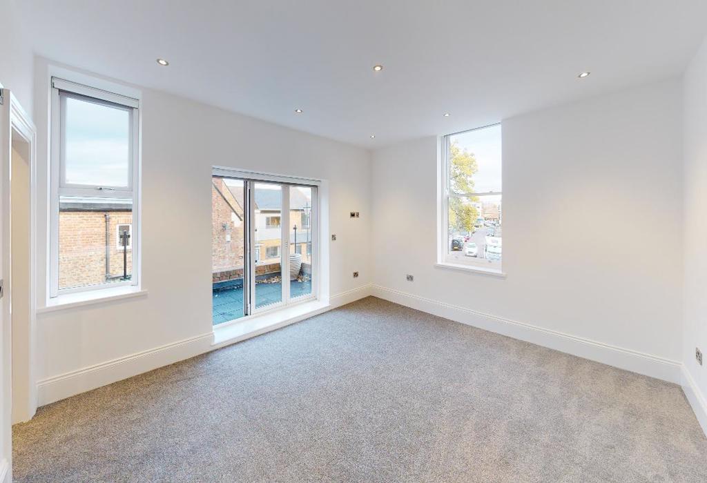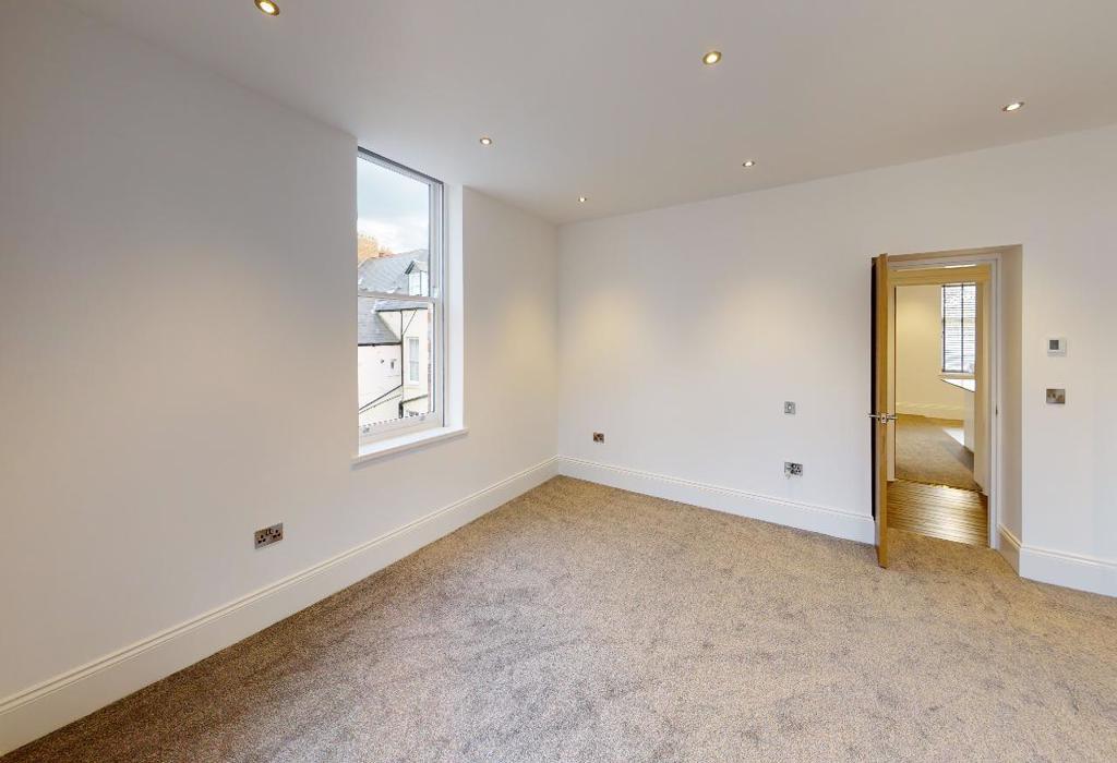 Master bedroom with stylish ensuite, separate fitted walk-in wardrobe and bifold doors leading to the roof terrace. Views to two aspects with an additional two windows. Media points in brushed chrome and electric blinds.