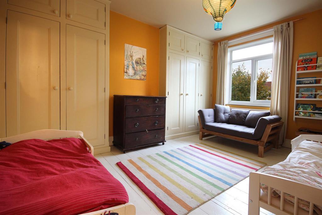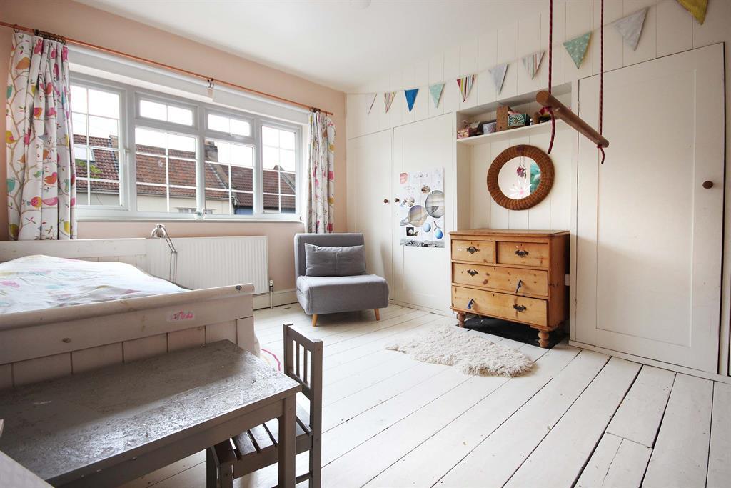 Original floorboards painted white, integrated storage to each side of chimney breast to side aspect, PVC double-glazed window to rear aspect, wall-mounted radiator to rear aspect.