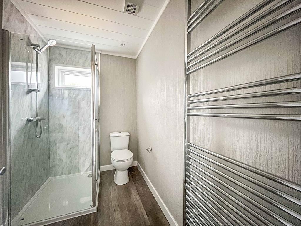 Step-in Shower cubicle. Low level w/c. Vanity unit with wash hand basin inset. Central heating radiator. Double glazed window. Extractor fan.