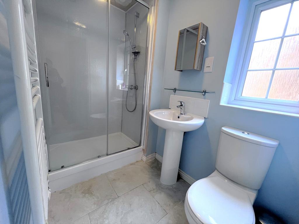 Upstairs, the master bedroom has an en-suite shower and toilet, bed, wardrobe desk and drawers. 2 Further double sized rooms with bed, wardrobe, desk and drawers.