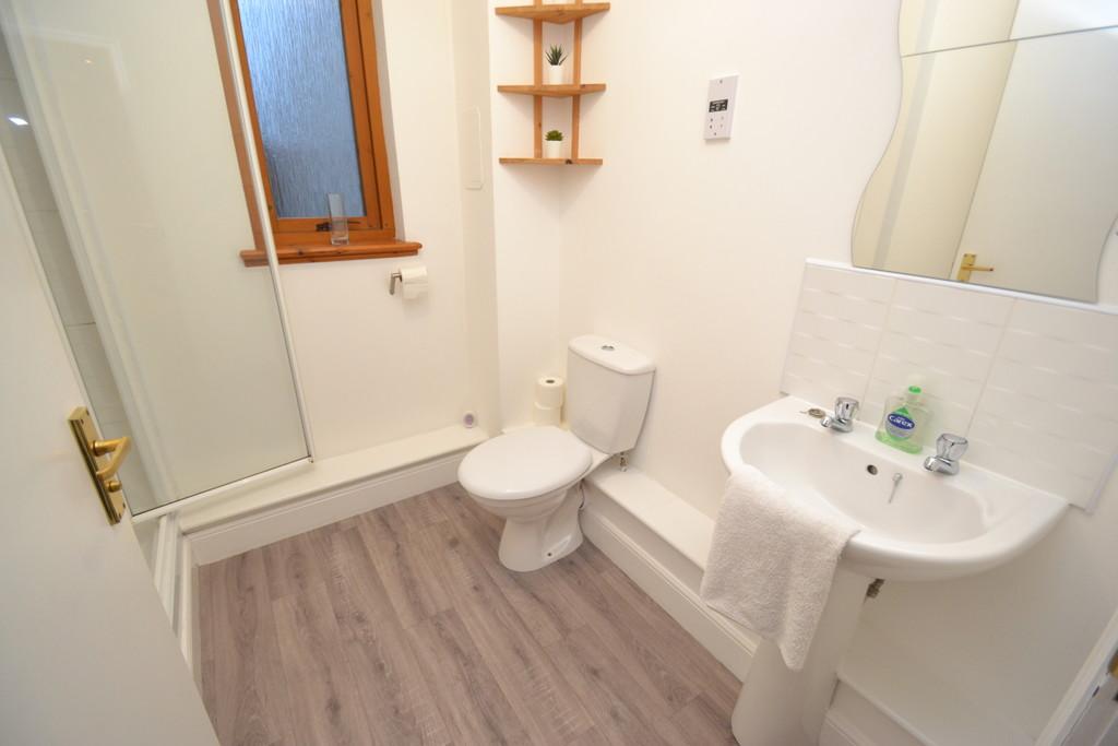 This property comprises of a large lounge area on the top floor, on the lower level there are two double bedrooms, fully fitted kitchen with dining area and bathroom with shower enclosure.