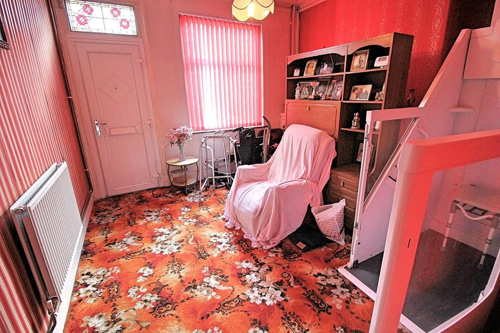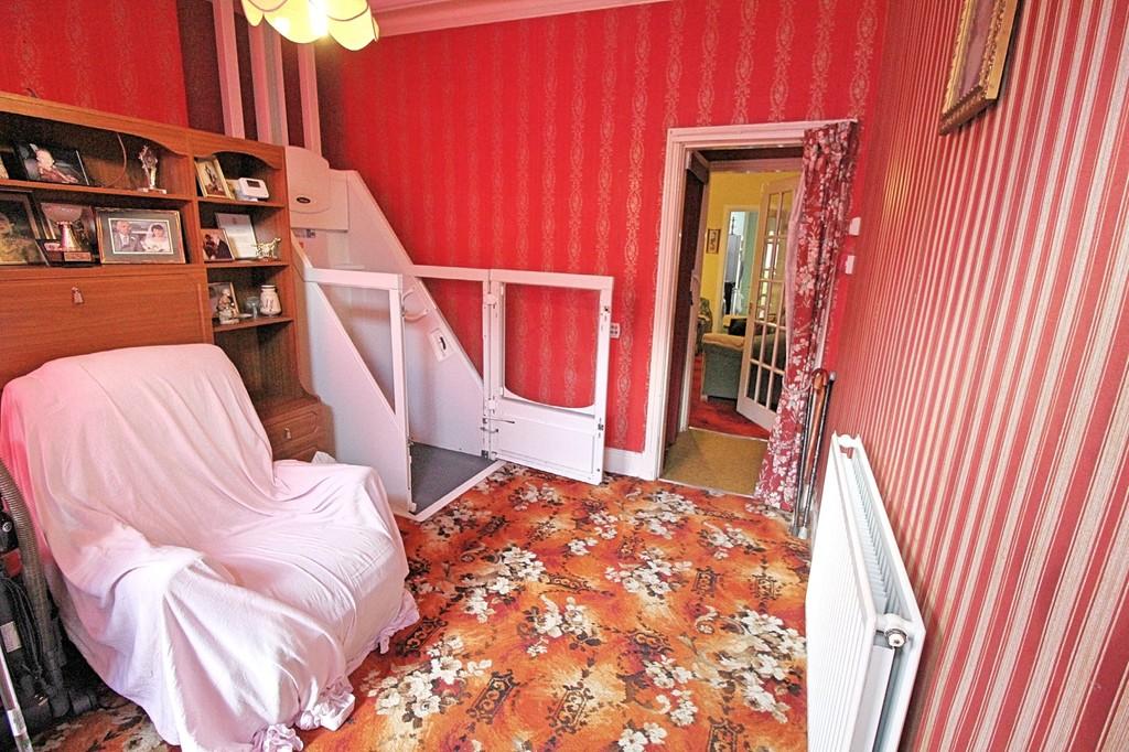 DINING ROOM 12' 0" x 11' 0" (3.66m x 3.35m) Entrance to dining room with window to the front elevation, carpeted flooring, radiator, modified wheelchair lift with access to bedroom one.