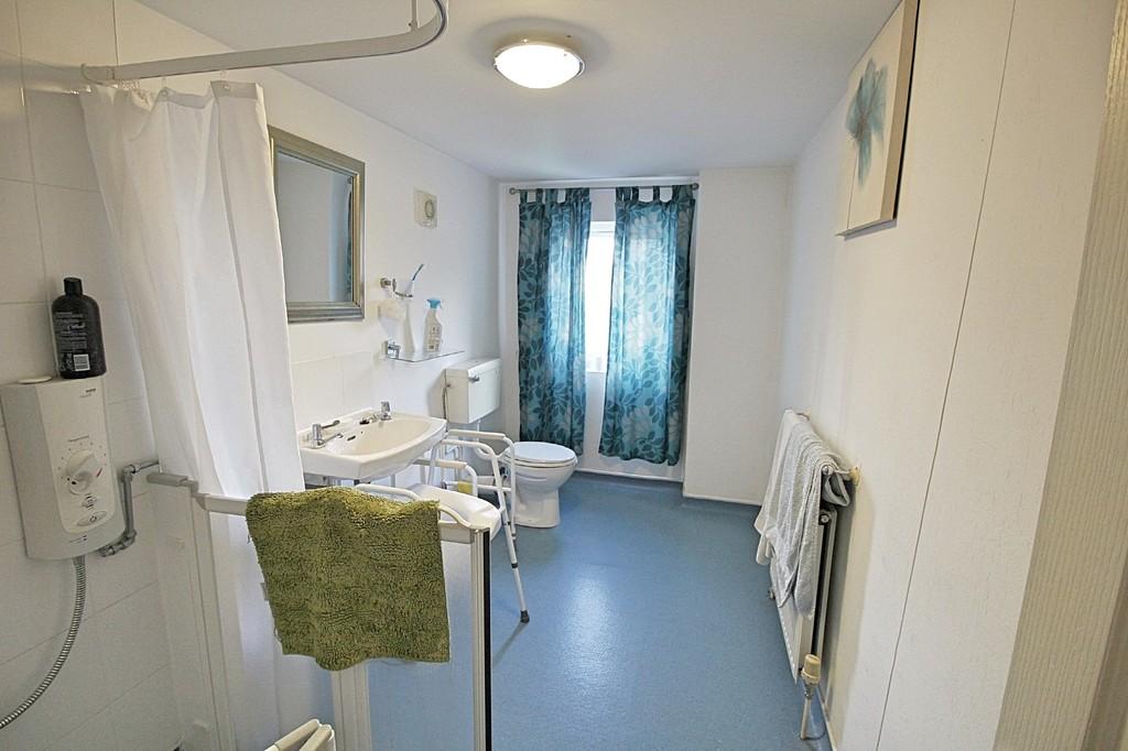 SHOWER ROOM Modified shower room / wet room with shower over, low level flush W.C, wash basin, opaque window to the rear elevation.