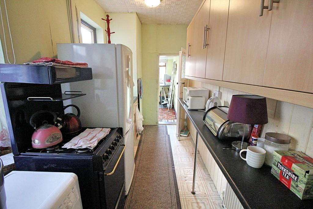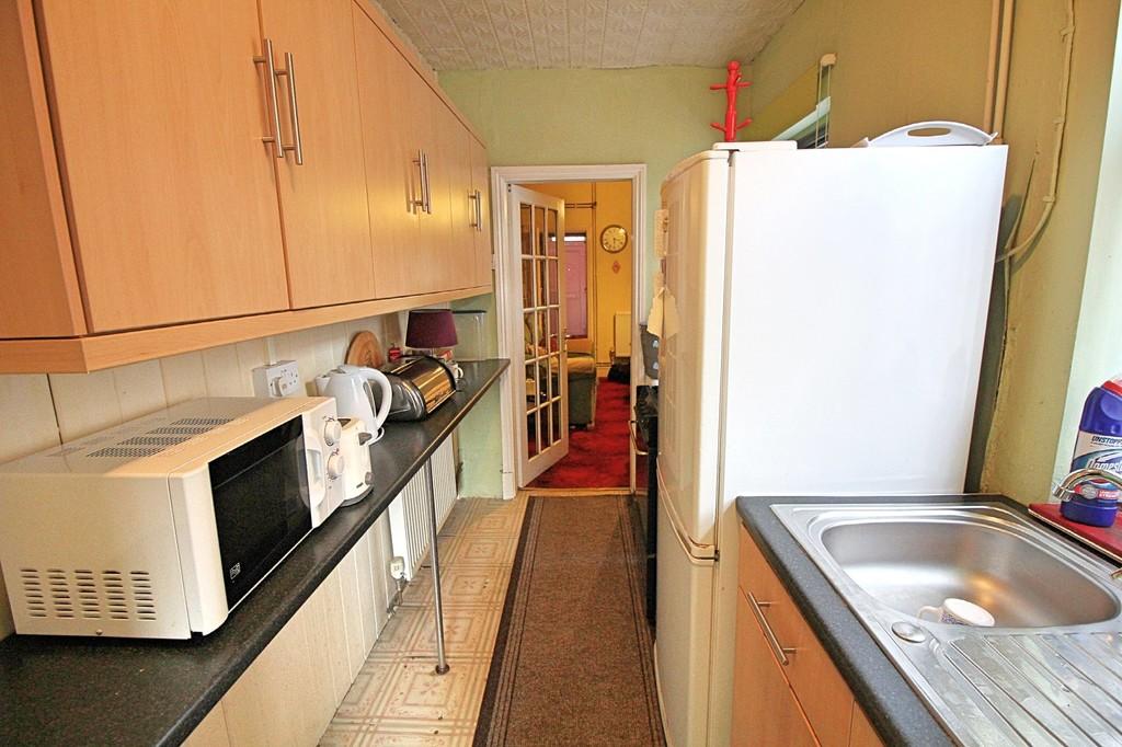 KITCHEN 12' 0" x 6' 0" (3.66m x 1.83m) Fitted kitchen with wall and base level units, roll edge work surfaces, stainless steel sink and drainer, windows to the side elevation.