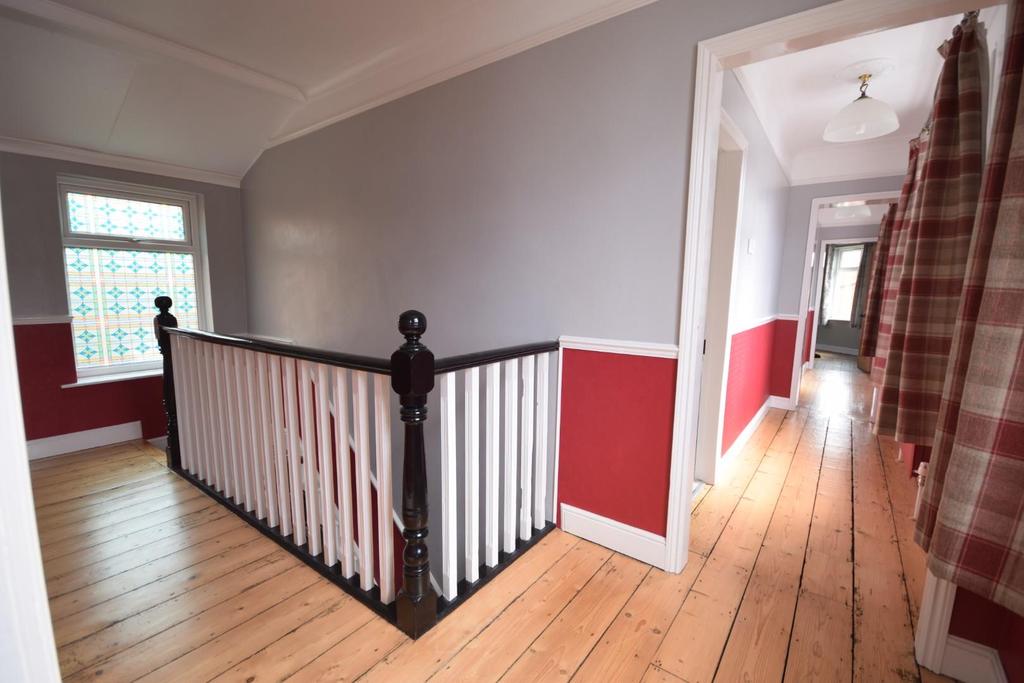 Landing - This area provides access to all four bedrooms and family bathroom, featuring two loft hatches, ceiling rose, picture rail and dado rail and stripped pine flooring.