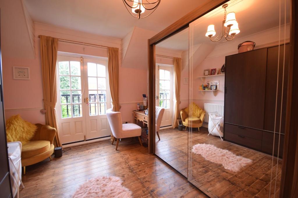 Bedroom Four - 3.45m max x 3.12m max (11'3" max x 10'2" max ) - This double bedroom offers you french door Juliet balcony to the rear featuring coving complimented with ceiling rose, picture and dado rail, radiator and original wooden flooring.