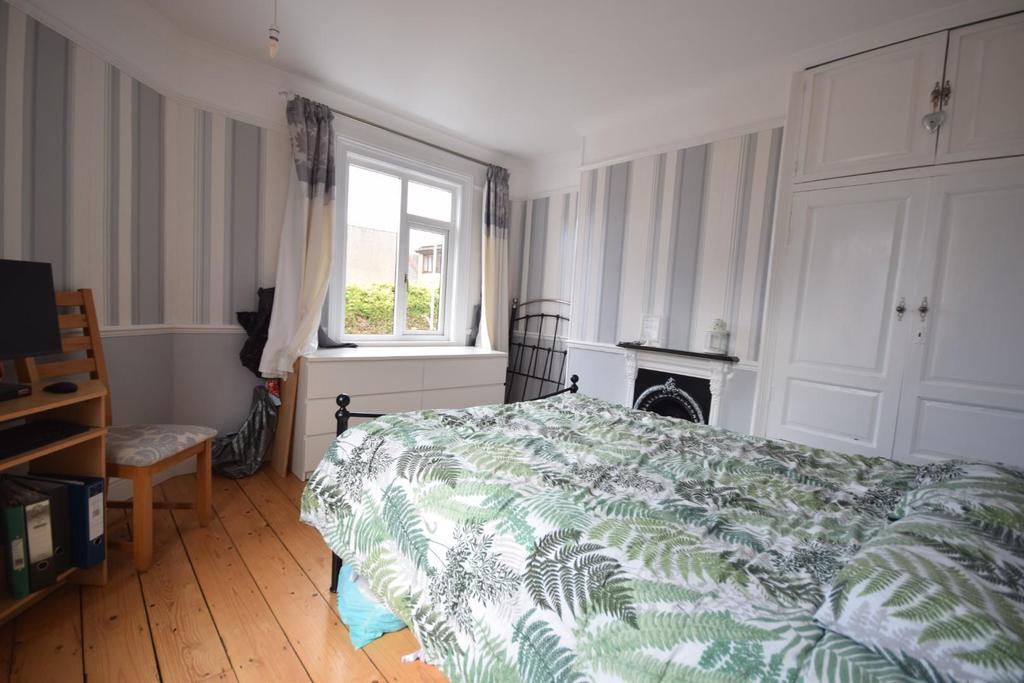 Bedroom Two - 3.66m max x 3.61m max (12'0" max x 11'10" max ) - This double bedroom offers double glazed window to the side and front aspect, feature fireplace, radiator, original built in wardrobe, complimented with original stripped pine flooring