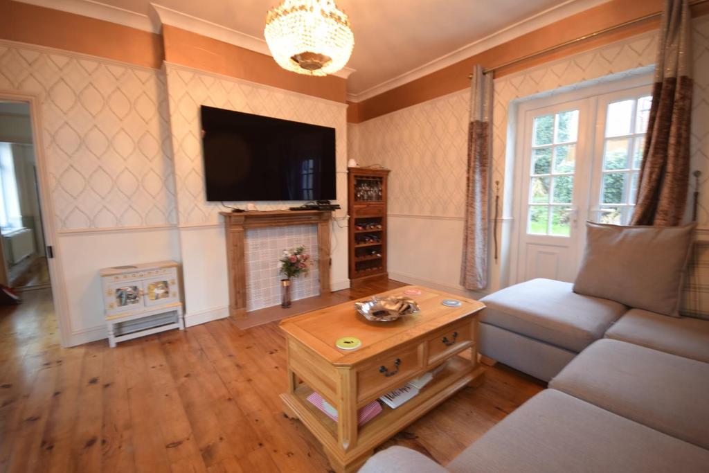 Lounge - 4.42m max x 3.84m plus recess (14'6" max x 12'7" - This generous size living space boasts many features to include coving complimented with ceiling rose, picture and dado rail, feature fireplace which can house electric fire with wooden mantle over, finished with wooden flooring and double glazed french doors to garden and a UPVC double glazed window to the front aspect.