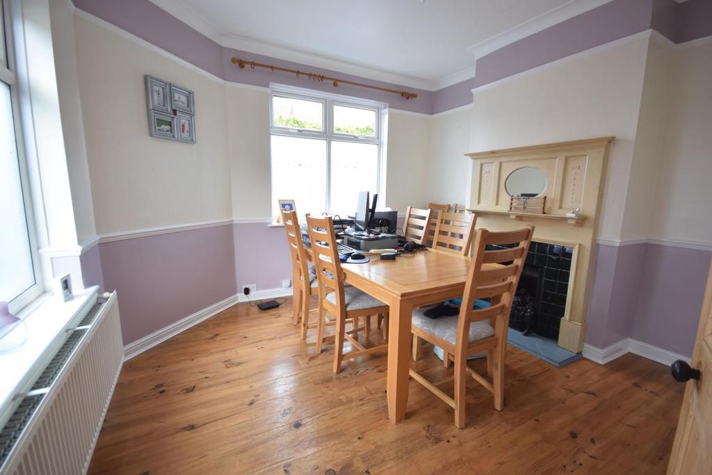 Dining Room - 3.63m max x 3.61m max (11'10" max x 11'10" max ) - This room is full of delightful period features including coving to ceiling, decorative ceiling rose, picture and dado rail, features fire place complimented with wooden hearth and housing gas fire, stripped wooden flooring, radiator and duel aspect UPVC double glazed windows to the front and side, stripped pine original door to hallway.