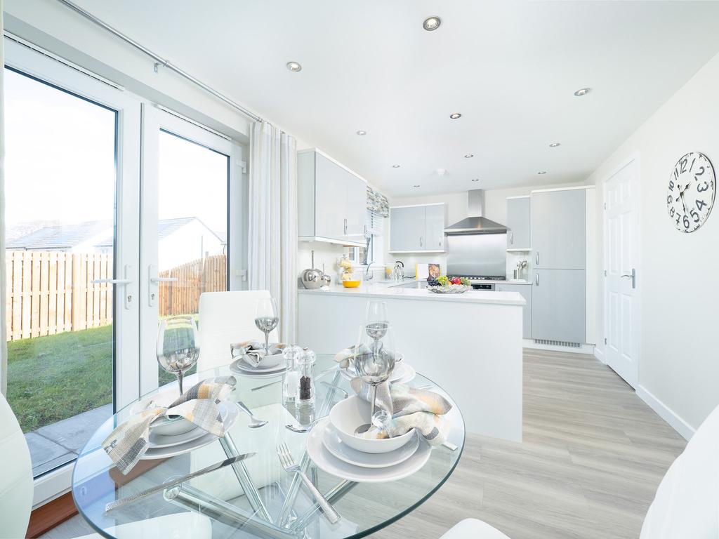 Enjoy the best of modern living in this popular three-bedroom home which benefits from a stylish open-plan kitchen/diner with French doors leading into the garden. The Elgin's bright front-aspect lounge, separate utility room, handy storage cupboard and downstairs cloakroom complete the ground floor. Upstairs, bedroom one is en suite and there's a good-sized family bathroom and further storage.