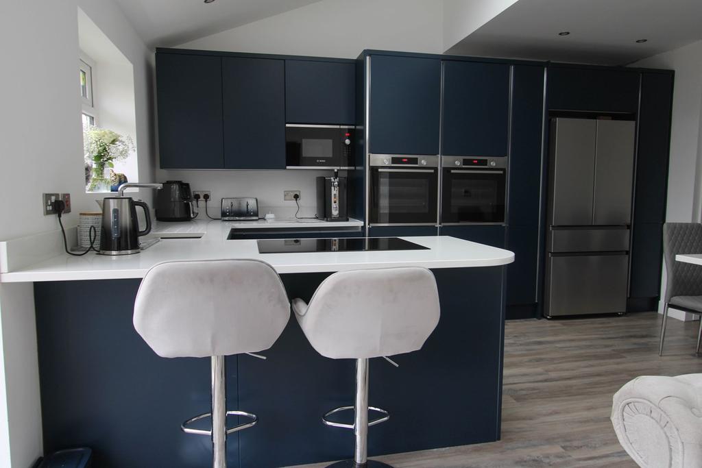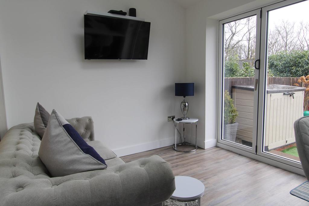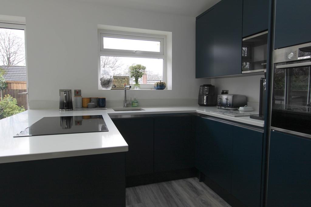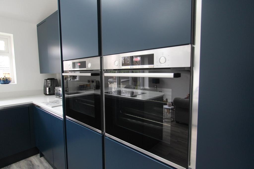 5.33m x 5.74m (17' 6" x 18' 10") Kitchen fitted with new wall and base units, quartz worktops, space to accommodate double fridge. Integrated appliances include, full size dishwasher, AEG 5 ring induction hob, Bosch microwave, double Bosch oven and built in bins. The kitchen also features a rear elevation double glazed window, access door through to garage and bifolding doors leading out onto the patio.