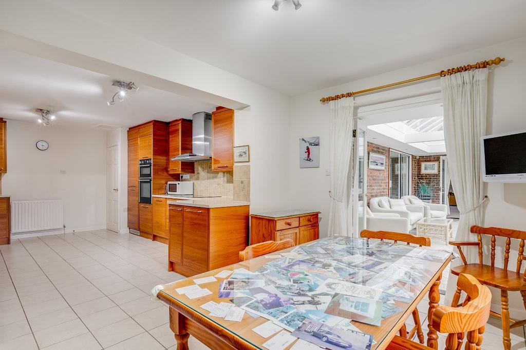 An impressive spread of rooms to the ground floor incorporates no less than four reception rooms and a wonderful open plan family kitchen dining room, ensuring a seamless flow and the perfect setting for large social gatherings and summer parties. There are five bedrooms well served by two luxury bathrooms and a cloakroom, with the principle bedroom enjoying an wonderful ensuite bathroom and Juliet balcony. The south facing rear garden features a large terrace perfect for al fresco entertaining, as well as mature plants and trees, an expanse of lawn and a Summer House. The large paved drive and double garage provide lots of parking and storage.