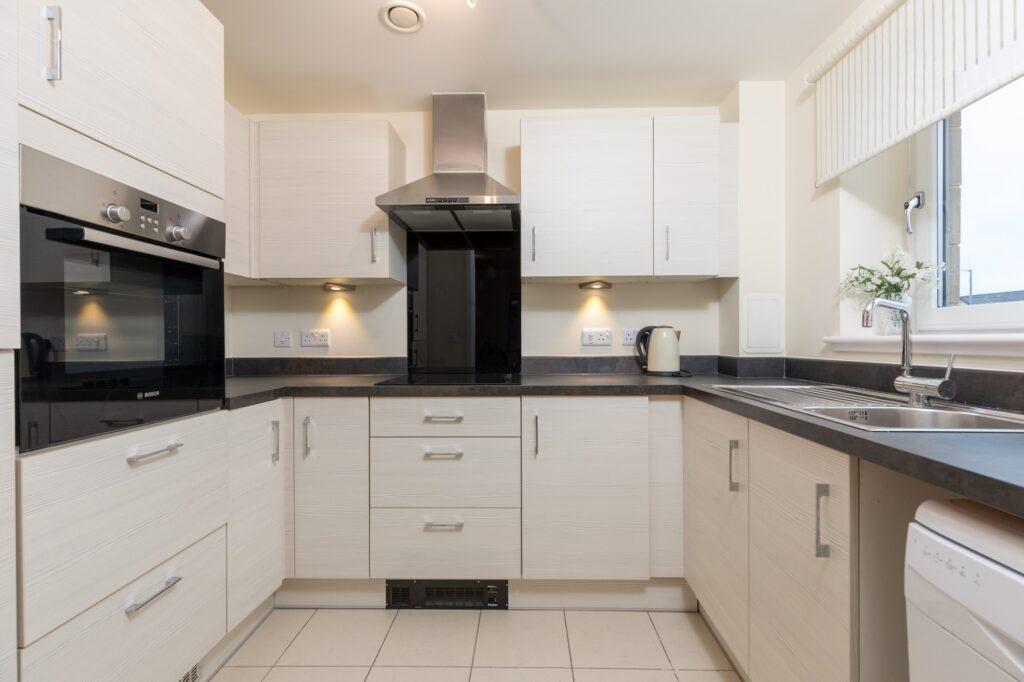 The apartment affords a reception hall with a large storage cupboard. Bright combined sitting/dining room. Well-appointed kitchen with a range of floor and wall mounted cabinets and integrated appliances. Bedroom, which is particularly spacious with a walk in wardrobe. Shower room with three piece suite.