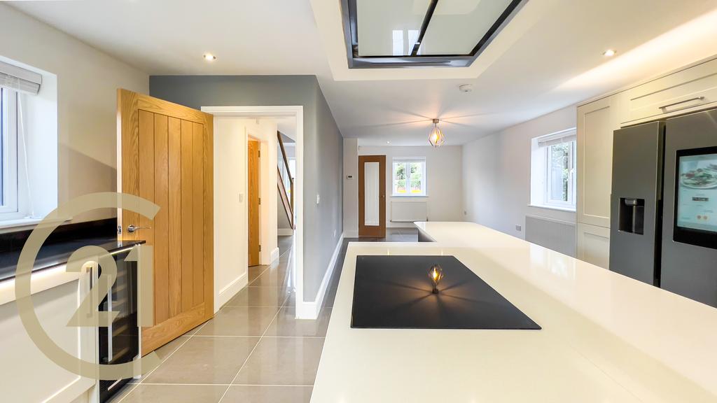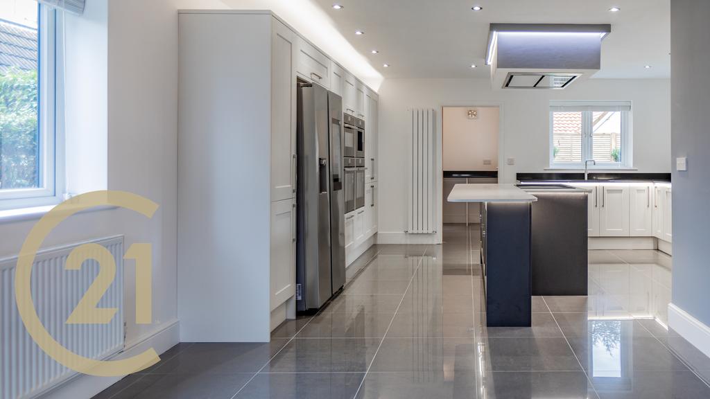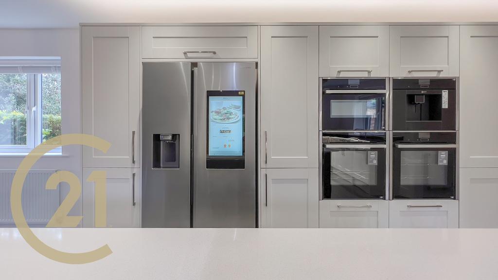 Offering 5 stunning bedrooms (2 with en-suites), Spacious living room with integrated fire place with LED lights, Large kitchen with center island, modern mood lighting with open plan dining room a Samsung Smart Fridge with built in Ipad for convenience, Smart oven with wifi assisted slide away doors, wine cooler, dishwasher and a separate utility room with space for washing machine and dryer.