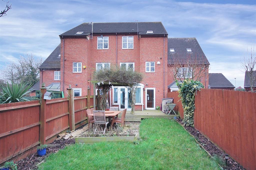 Rear Garden - This particular house benefits from one of the larger gardens on the development which has been landscaped with features to include a raised timber decked terrace outside the utility and conservatory doors and a timber framed pergola with steps leading down to a paved patio with raised borders and main area of garden laid to lawn which is fully enclosed by timber panelled fencing and a further raised timber decked seating area capturing the afternoon and evening sun. The garden affords a pleasant backdrop of neighbouring mature trees with glimpses of the open field in the distance. There is also an outside tap and lighting.