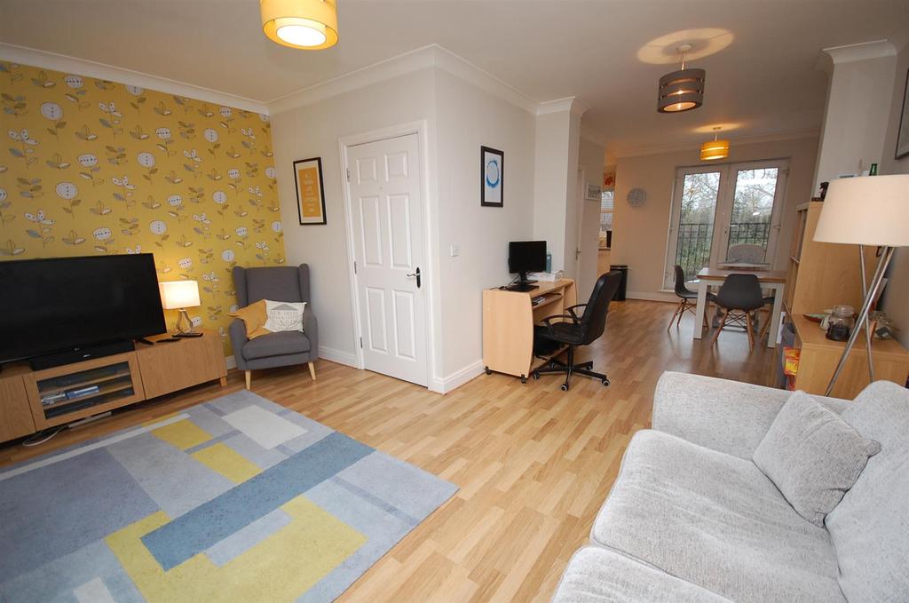 Living Area - 4.75m x 2.77m (15'7" x 9'1") - Forming part of the larger open plan first floor space the living area has a window to front and a set of French doors with a feature Juliet balcony to the front. Coved ceiling, tv, phone and cable connections and opening to the study and dining area.