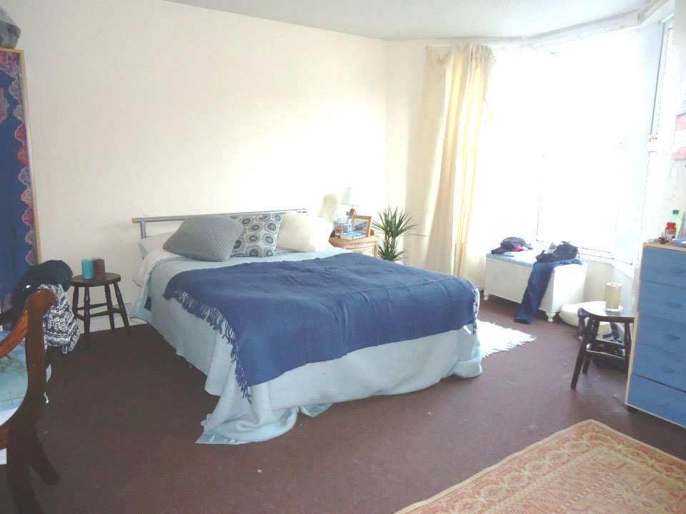 Spacious bedroom with plenty of storage space. Double bed, wardrobe, desk & chair and chest of drawers