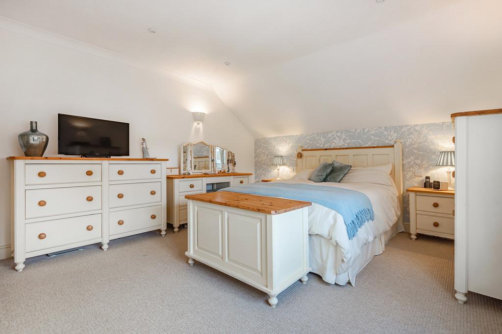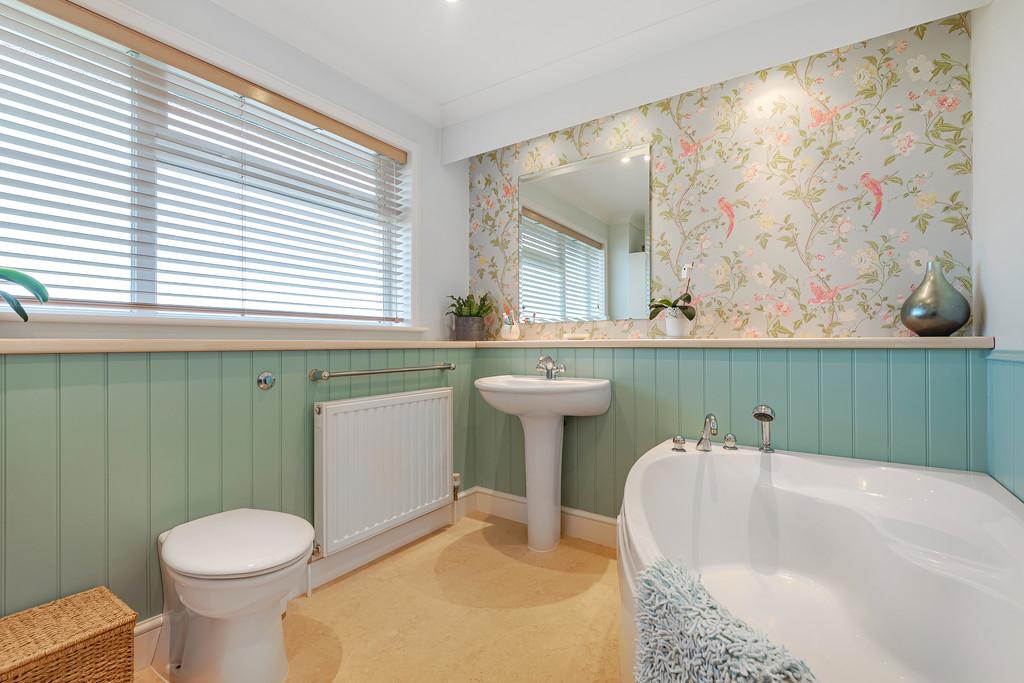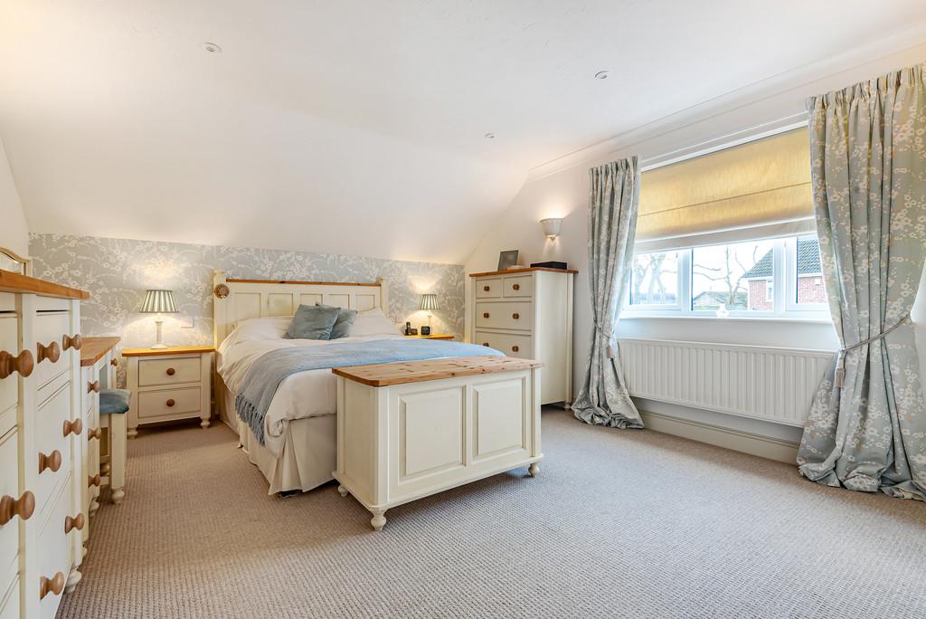 The first floor is approached via a straight staircase leading up to a spacious landing with loft access hatch. The main bedroom has fitted wardrobes, fitted window blinds. Bedroom two which is a good size and has stunning views to the rear, has fitted window blinds and wardrobe cupboard. Bedroom three has fitted window blinds, radiator, cabinet, fitted wardrobe, overlooking the front garden and Alpheton green. Bedroom four has lovely views to the rear over the garden and countryside beyond and a fitted wardrobe cupboard.