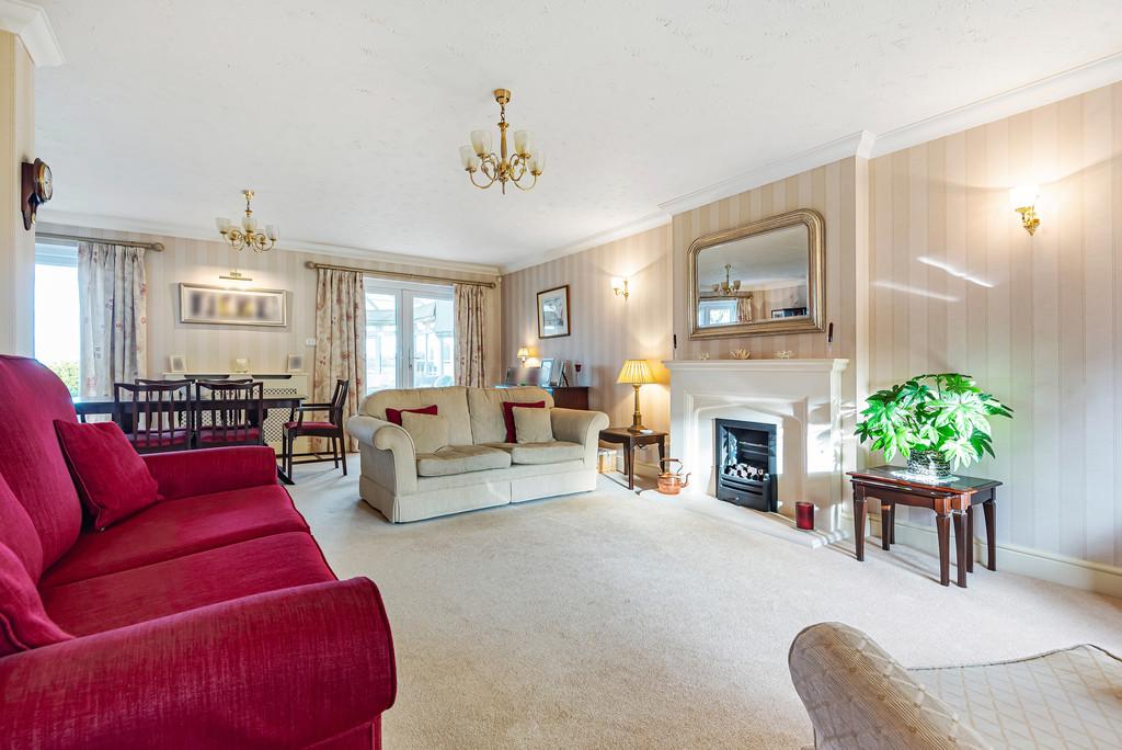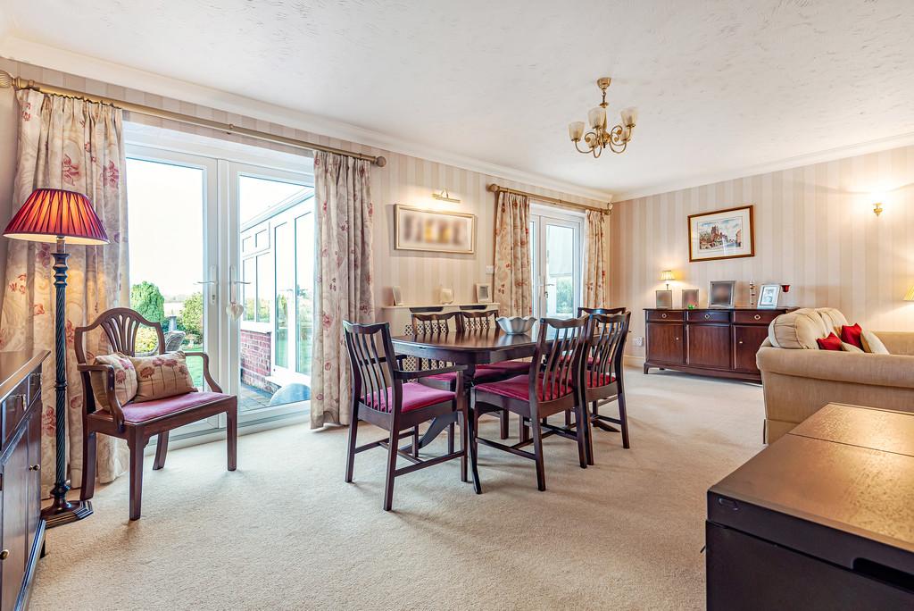 'L' shaped sitting/dining room 23' 5" max. x 20' 2" max. (7.14m x 6.15m)