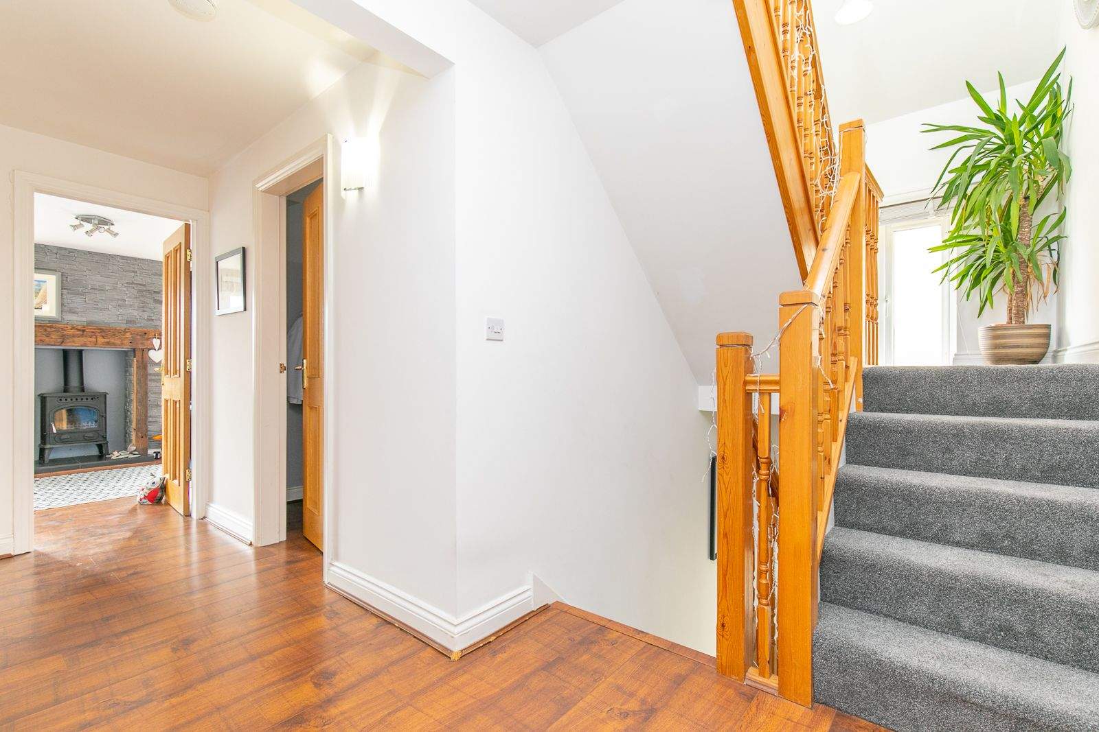 ENTRANCE HALLWAY (approx 14'2 x 9'1) Welcoming entrance hallway with timber staircase to both upper and lower floors. Built in airing cupboard. Built in cloaks cupboard. Attractive wood effect flooring.