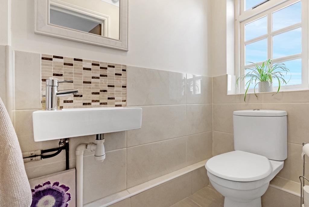 Double glazed window to front aspect, fitted in a two piece suite comprising low level WC, wash hand basin, radiator, complementing tiling, tiled flooring.