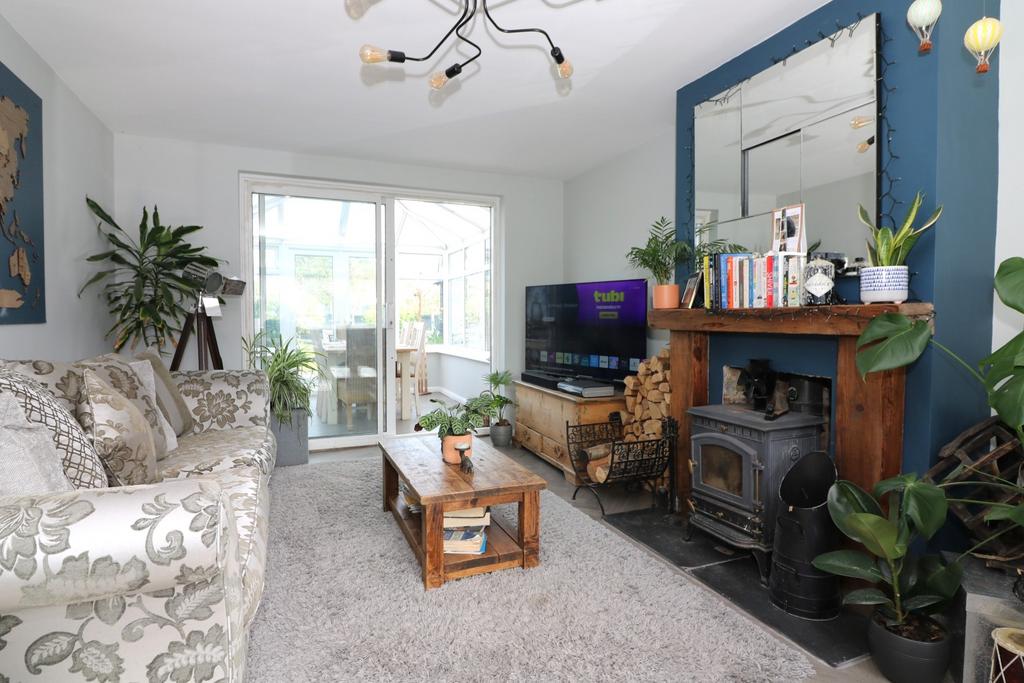 The internal accommodation comprises a generous size living room with feature fireplace, sliding doors to the conservatory which also provide access to the garden. A triple aspect kitchen/dining room with tiled flooring and door to the rear.