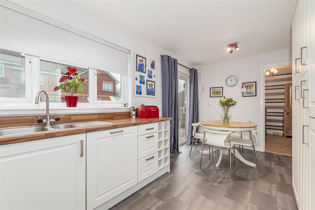 There is a well-equipped modern kitchen with integrated appliances and breakfast area with patio doors opening to the sunny rear garden, there is also a separate utility room.