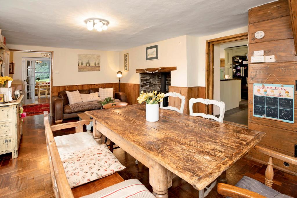 On entering the property one is instantly reminded of its grand history. There are three large formal reception rooms, all with woodburning fires and original parquet flooring throughout. The kitchen is very well suited for modern living, with an oil fired Aga and granite worktops. From the kitchen there is access to the pantry as well as doors to the boot room and out to the kitchen garden.