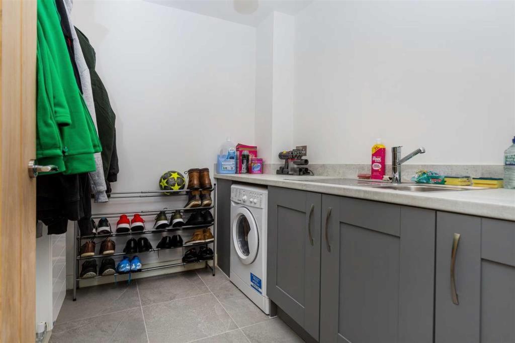 Utility Room - 6'1 x 7'10 - Fitted with a range of base units with concrete effect laminate roll top work surfaces, matching upstands and an inset stainless steel sink with drainer and monobloc mixer tap. Having plumbing for an automated washing machine, an extractor fan and central heating radiator.