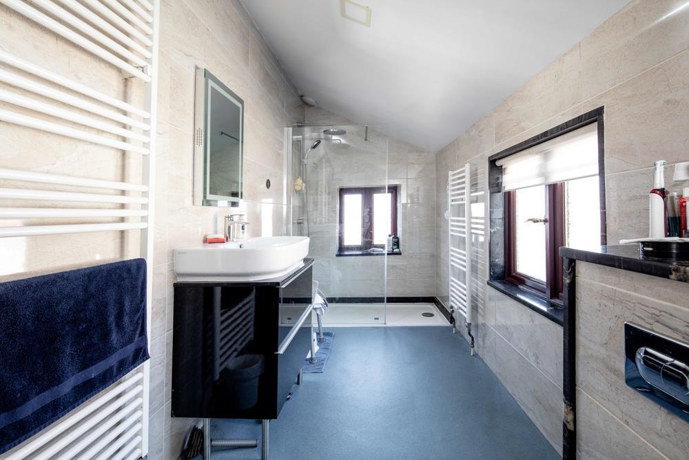 Gardens and grounds: The property is approached over a long drive giving access to a large enclosed gravel car parking area for a number of cars and horse boxes. A pedestrian path leads from the car park, between the lawns, to the front of the house. The gardens and grounds lie in front of the house and outbuildings and are laid principally to large expanses of lawns part bounded by stone walls. The lawns are interspersed by a variety of trees including Flowering Cherry, Maple, Apple, Pear and Walnut. In addition, there is an ornamental hollow wrought iron sphere adorned with a Wisteria. The front garden offers scope to create a small paddock, or enclosures. In the corner of the paddock there are two converted shipping containers which are currently used for the extra storage. In all the property extends to about 1.75 acres.