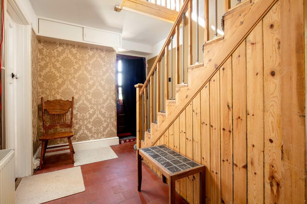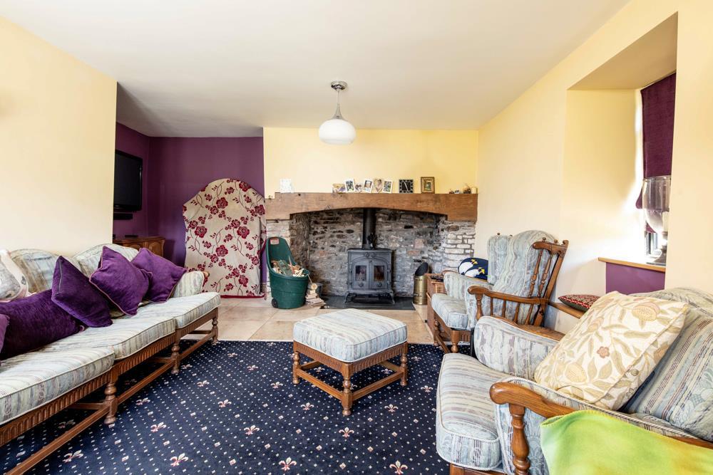 The sitting room is a most atmospheric room with large stone fireplace fitted with a log burning stove. The sitting room and dining room both overlook the front garden as does the kitchen, which is fitted with a range of units and a range style cooker. There is a rear entrance porch, off which is a large store room. On the first floor are three bedrooms, and the former bathroom is now fitted as a shower room, installed in recent years.