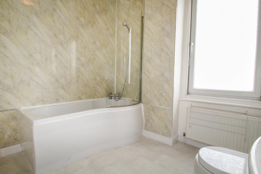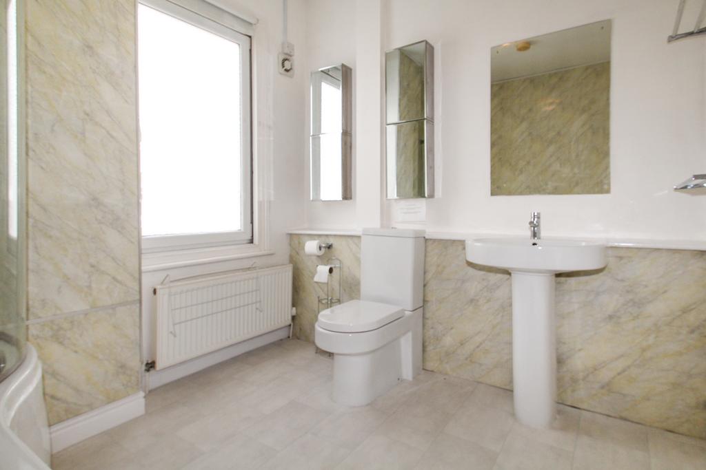 Newly fitted modern house bathroom with white three piece suite. Fully tiled bathroom with cream tiles, stylish stainless steel towel rack and mirrored cupboards. Shower over bath, wash basin and WC. Also a second washroom consisting of wash basin and WC.
