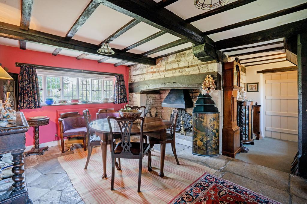 There is double aspect sitting room with Inglenook fire and former bread oven, dining room with fireplace and flagstone floor and a study.
