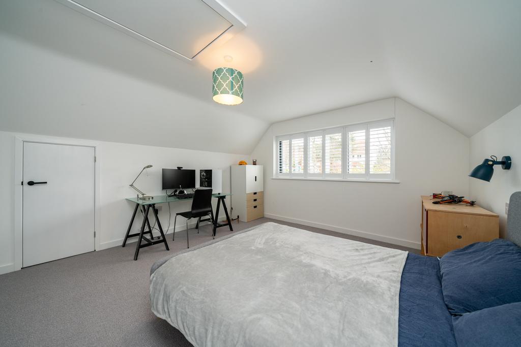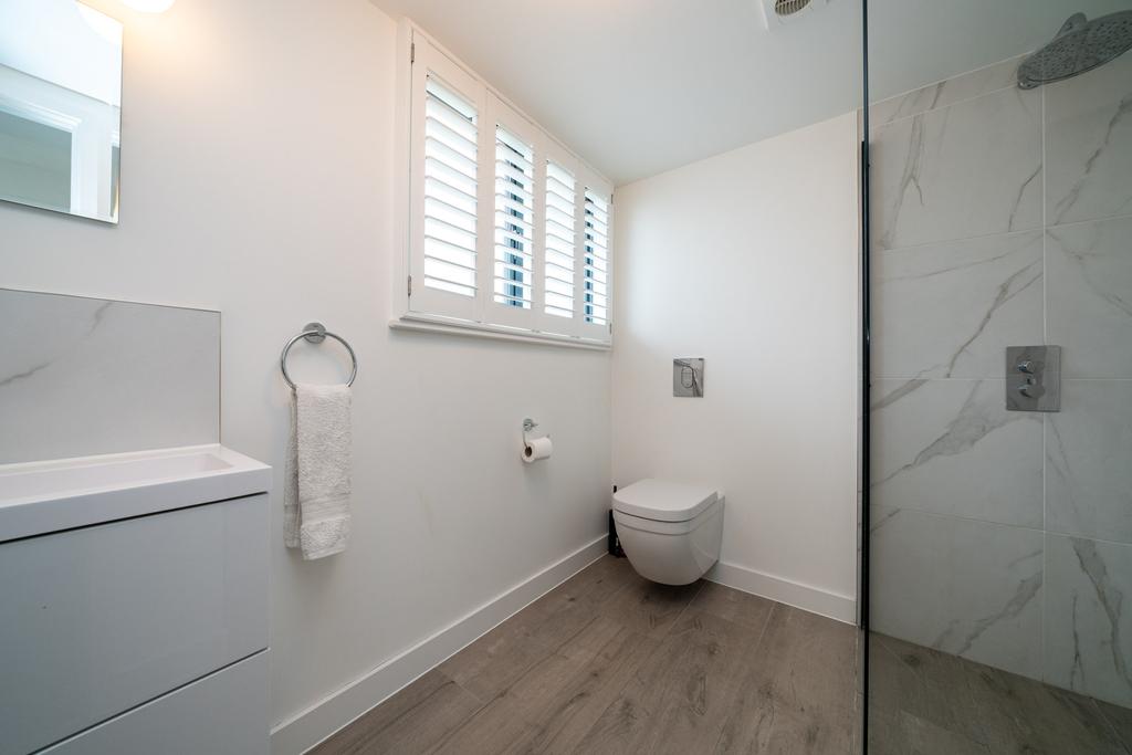 On the first floor, a charming bedroom to the rear features a Juliet balcony plus a contemporary ensuite shower room. A second generous bedroom also benefits from an ensuite shower, whilst a further two double bedrooms are served by the luxury family bathroom. Built-in storage features in all bedrooms.